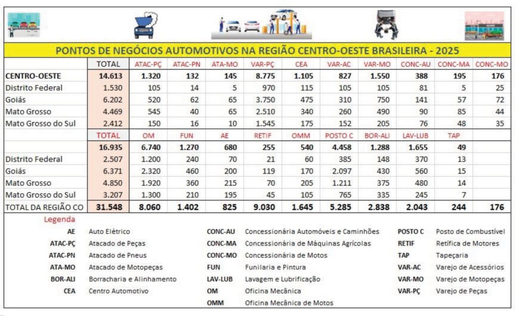 A economia do Centro-Oeste segue em expansão, e o mercado de reparação automotiva se mantém como um importante vetor econômico na região. Estima-se que os negócios no setor continuem crescendo, acompanhando o fortalecimento da cadeia automotiva e de serviços ao longo dos anos.