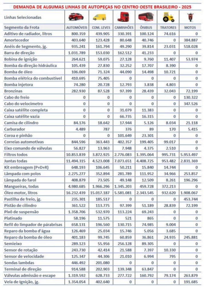 A região Centro-Oeste do Brasil desponta como um polo estratégico para o setor de reparação automotiva, com projeção de movimentar cerca de R$ 10,6 bilhões em 2025. Grande parte desse faturamento está concentrado na venda de autopeças (63%) e na prestação de serviços (37%). Além da robusta economia agropecuária, o Centro-Oeste amplia sua presença em setores como automotivo, farmacêutico e alimentos.