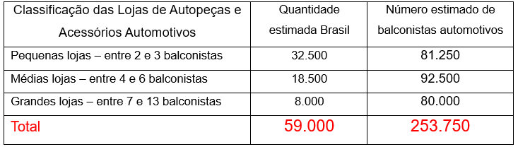 No Brasil atualmente são cadastradas e ativas aproximadamente 52.000 lojas de autopeças e 7.000 de acessórios, com conceito tradicional – balcão e atendimento ao público. Estima-se ainda mais 1.000 lojas que operam com sistema misto – balcão e self-service em corredores.