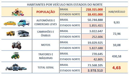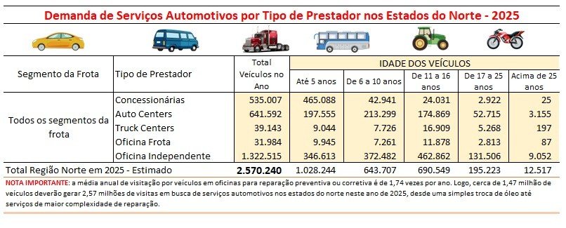Cabe o registro que nos estados do norte são cadastrados e ativos cerca de 20,8 mil pontos de atendimento automotivo (de venda de peças a atendimento de serviços).