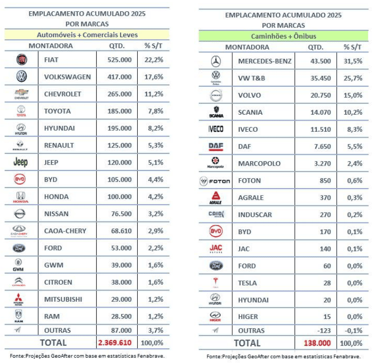 Fonte: Fenabrave – valores de 2025 estimados com base em realizado até novembro e projetado final do ano.