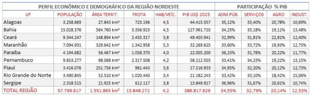 A economia do Nordeste em 2025 apresenta sinais com projeções otimistas de crescimento, superando a média nacional, impulsionada por setores como energia renovável, petróleo e gás, agronegócio e um aumento no turismo. O crescimento é sustentado por investimentos estratégicos, especialmente nos setores de energia eólica e solar, e pelo Programa de Aceleração do Crescimento (PAC). No entanto, há desafios como a queda pontual da atividade econômica em alguns meses e com retração da indústria. O crescimento PIB regional médio dos estados deve ficar entre 2,5 e 2,8%.
