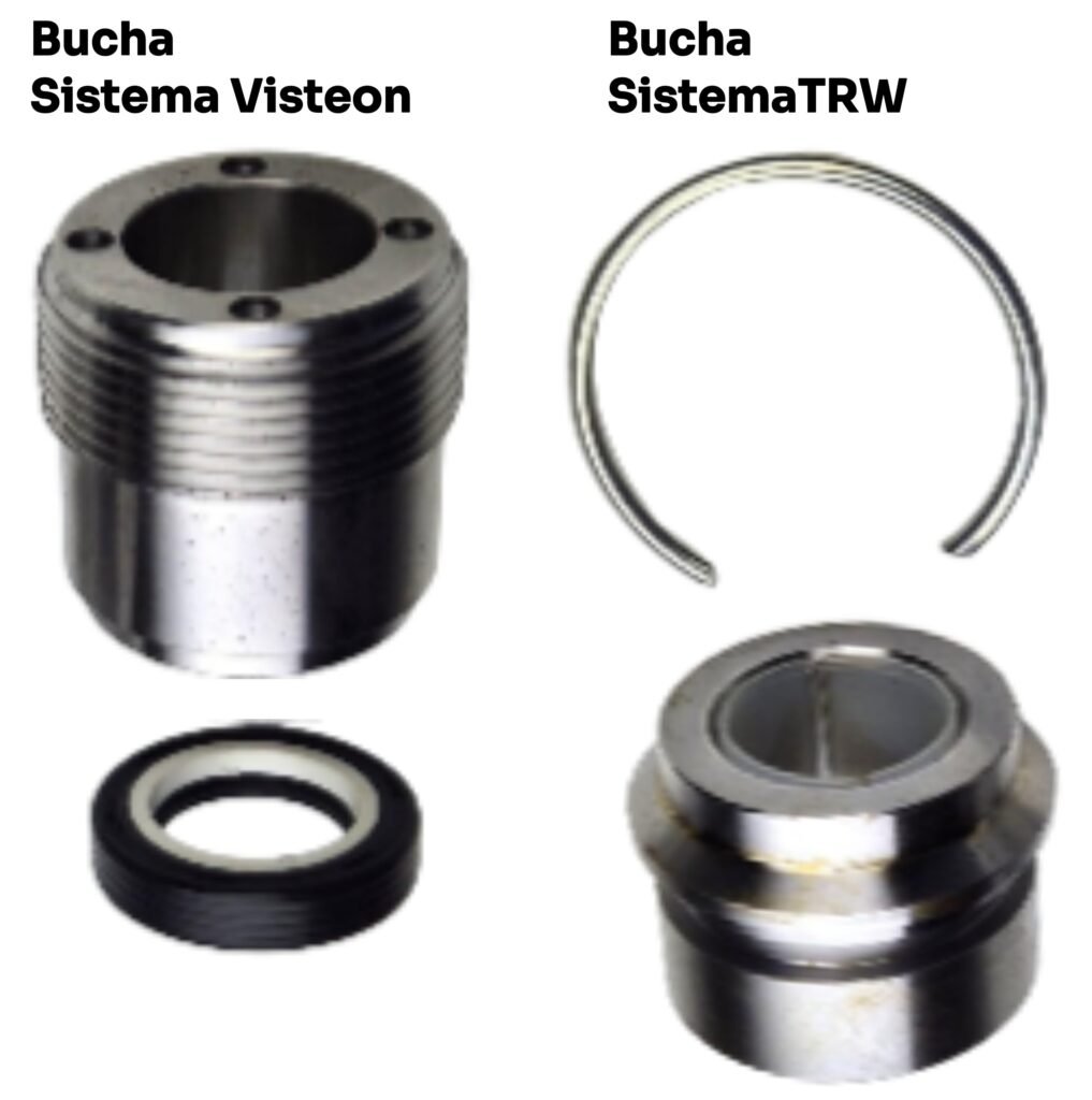 Visteon – Cremalheira de 22 mm e bucha lateral rosqueada, sem sistema de regulagem, dentro da linha Visteon, existem quatro variações construtivas internas, que definem completamente o procedimento de reparo: