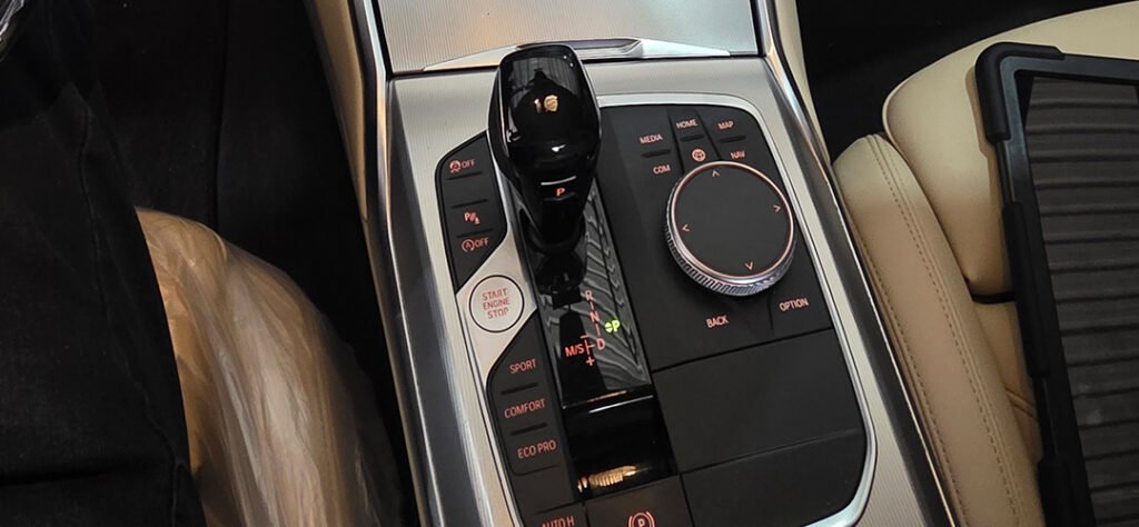 No console central, ao lado da alavanca de marchas, tem um mouse (botão redondo grande), que lhe permite acessar o IDRIVE, sistema inteligente de informação ao motorista.