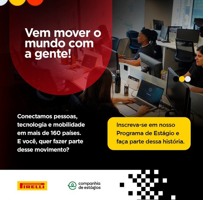 Inscrições e mais informações: https://estagiopirelli.com.br